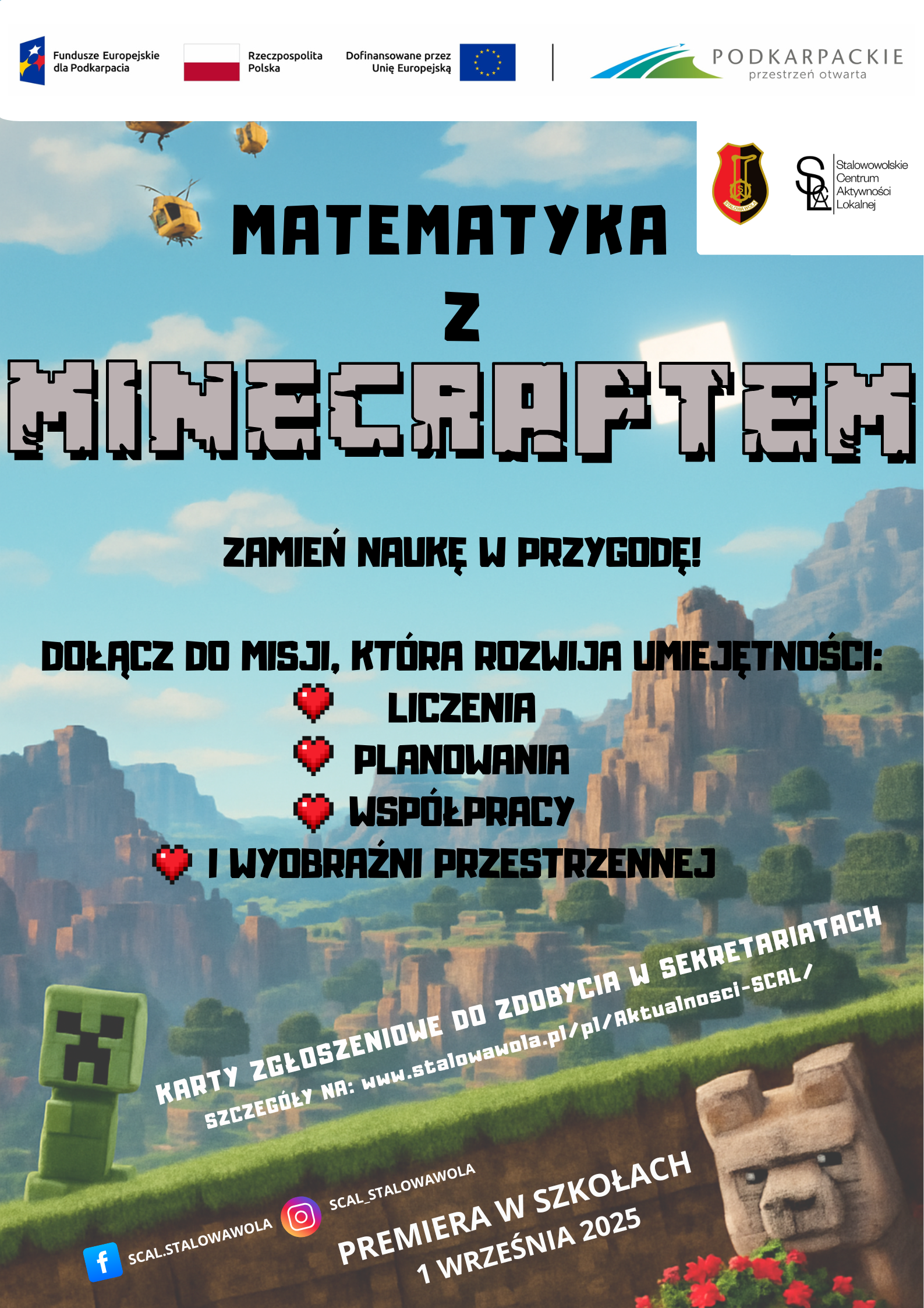 W ramach projektu "Era Inżyniera - rozwój kompetencji kluczowych w Gminie Stalowa Wola" zapraszamy dzieci z klas I-III na zajęcia matematyczne, które odbywają się z wykorzystaniem gry Minecraft!